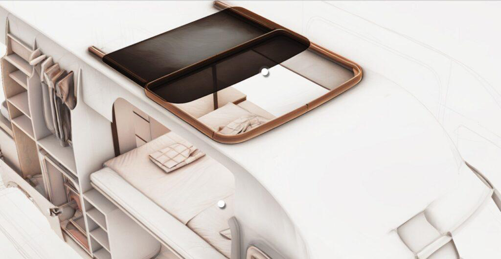 In summary, Ananya positions itself as an experimental van, free from the usual compromises: a large living space, lots of light, luxurious materials, with a design conceived to make the cabin a pleasant place, regardless of the duration of the trip.